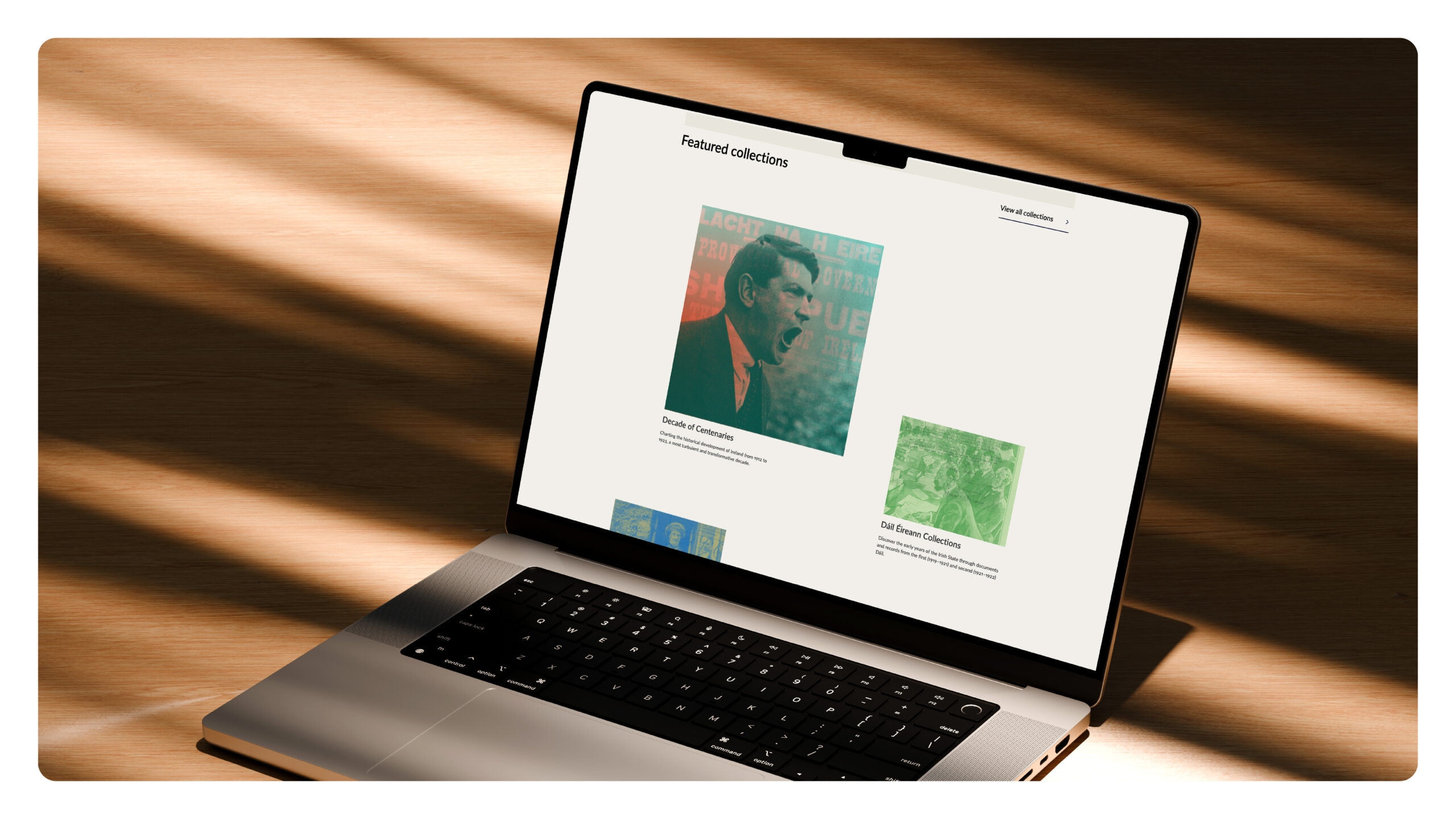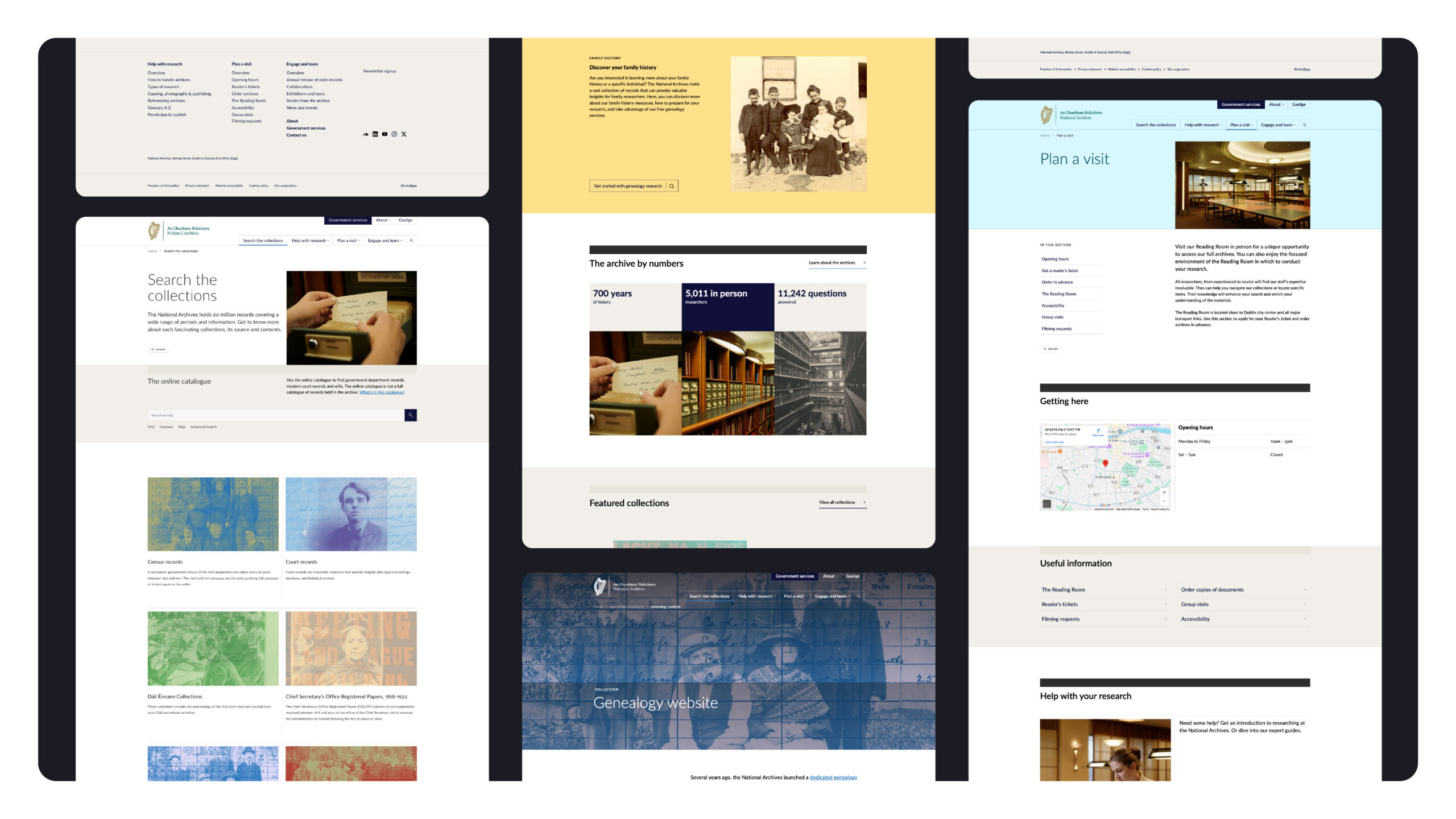 The design concept focused on clarity, calm and cultural resonance to support reading, discovery and exploration.The visual language was inspired by archival materials like ink, parchment and Irish landscapes, creating a subtle connection to heritage.Designed around real user behaviour: Whether users are looking for a specific record or casually browsing exhibitions, the site adapts to their needs.
