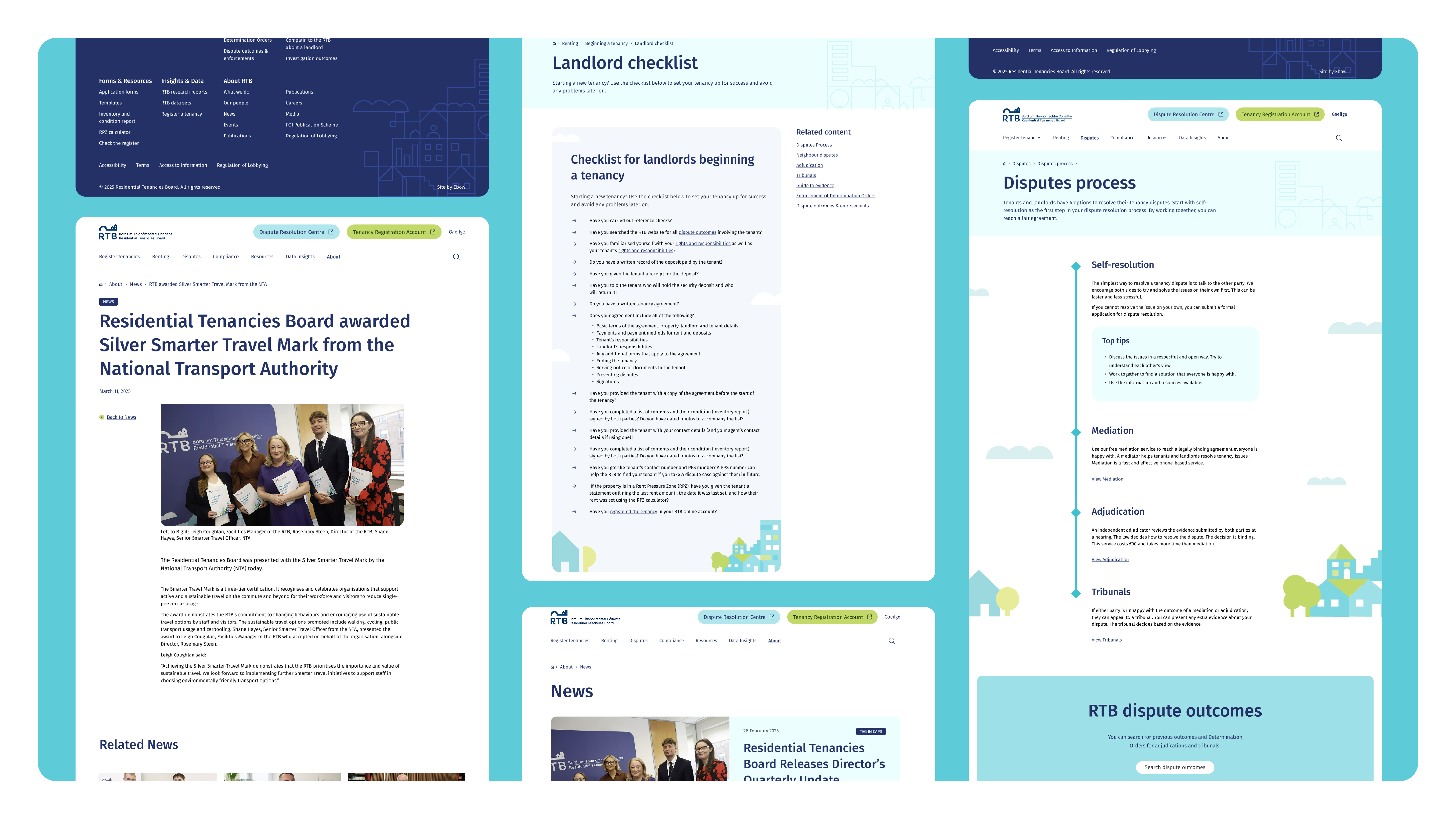 The design concept for RTB.ie was fundamentally user-centric, prioritising clarity, ease of navigation, and accessibility.A clear introduction to RTB’s services and guide users to meaningful, task-oriented actions.Adopting a mobile-first, responsive strategy, optimising content presentation across all devices.Our approach focused on designing a robust, user-centred information architecture.